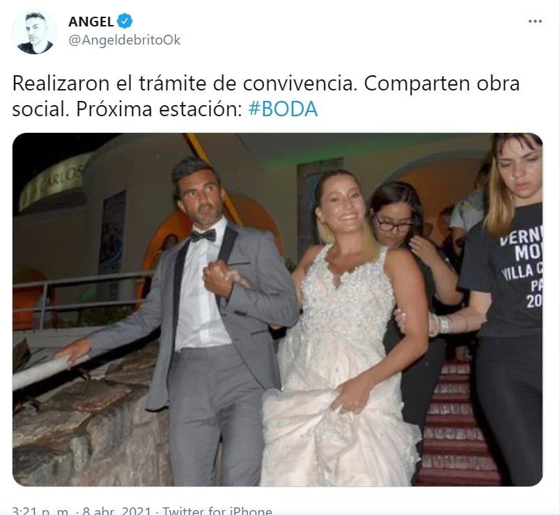 Ángel de Brito publicó un mensaje en Twitter en el que explica por qué anticipa un próximo casamiento de la pareja conformada por Fabián Cubero y Mica Viciconte.