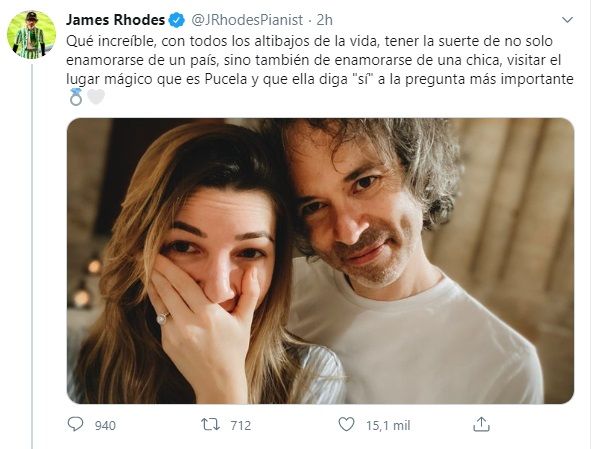 Por su parte, el músico contó en Twitter cómo fue el momento en que le propuso boda a su amada.