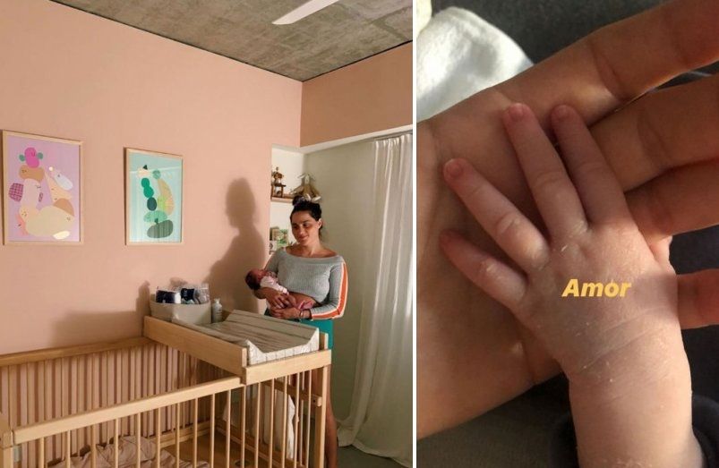 Ya en su hogar, mostraron los tiernos detalles del cuarto de la beba y cuando le daba la teta a la bebé.