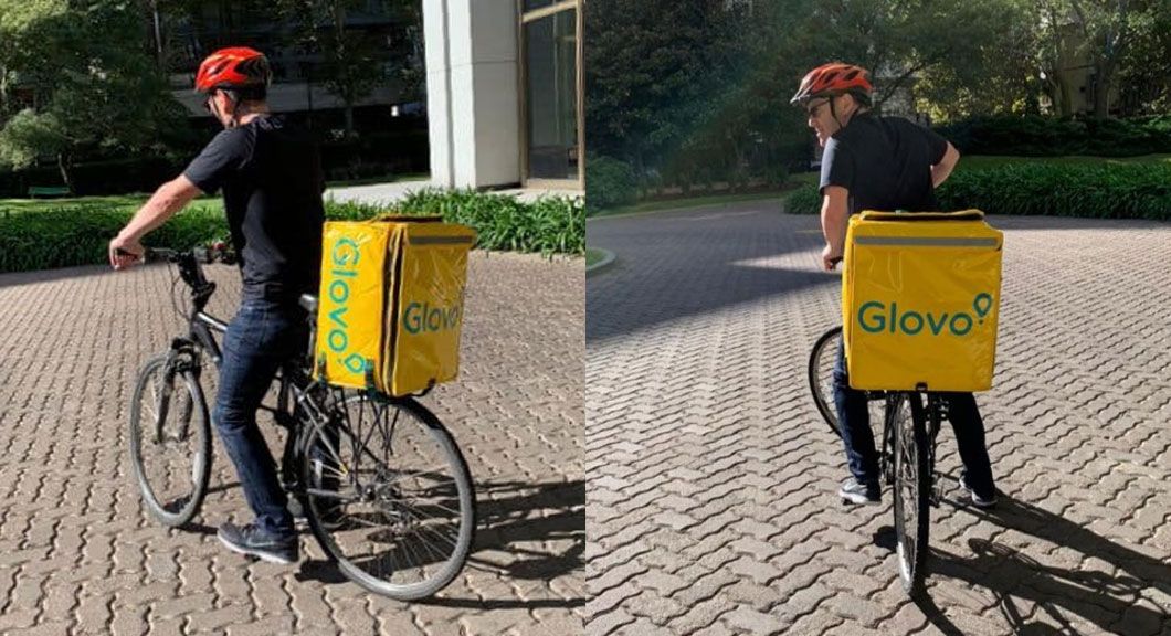 Los empleados aseguran que al hombre le gusta hacer deporte y para no quedarse quieto se sacó el permiso para repartidor de comida, se asoció a una empresa y anda por la calle sin problemas.