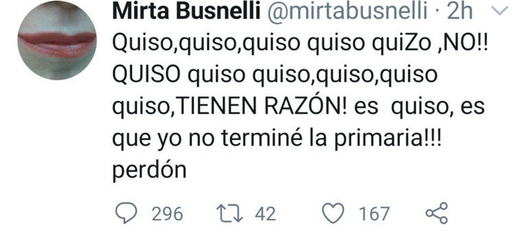 Entonces, la actriz volvió a escribir; “Quiso, quiso, quiso, quiso, quiZo, NO!! QUISO, quiso, quiso, quiso, quiso, quiso. TIENEN RAZÓN! Es quiso, es que yo no terminé la primaria!!! Perdón”.