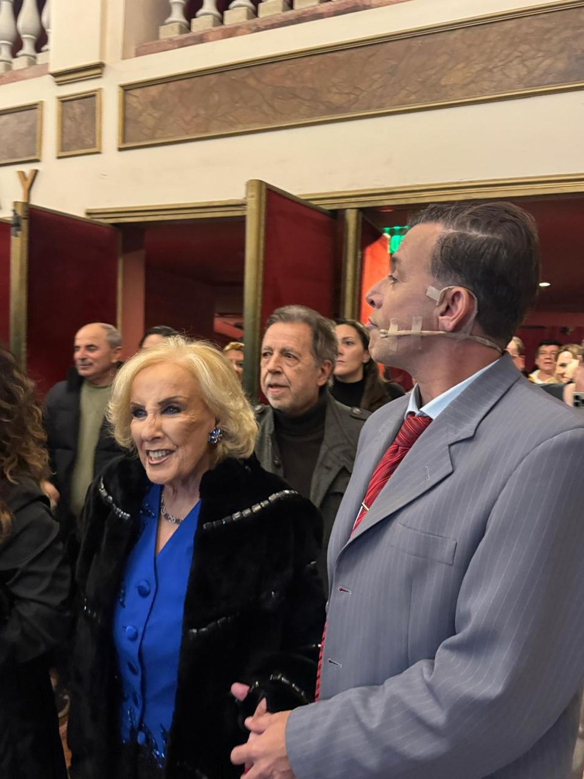 Y como si eso fuera poco, luego de la canción Mirtha salió del brazo del actor ante la ovación de todo el teatro y juntos transitaron y caminaron por la Avenida Corrientes hasta llegar al auto de la diva.