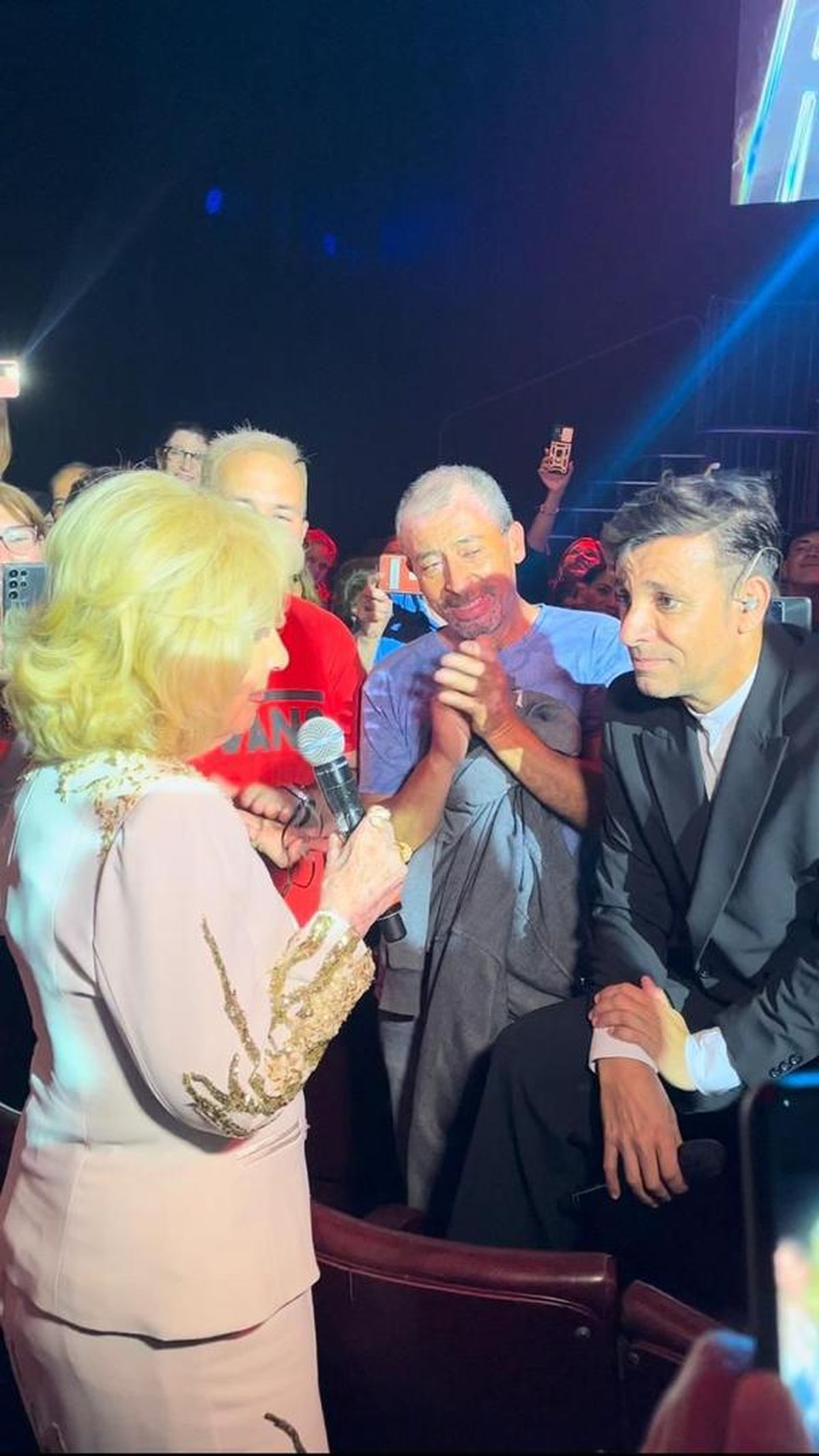 La conductora de La Noche de Mirtha se ubicó en la platea preferencial de la fila 5 desde donde rió, se emocionó, cantó y hasta bailó junto a Martín Bossi.
