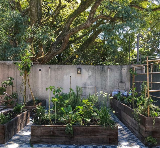 La cocina es muy amplia y sencilla con azulejos subway, piso damero turquesa, una gran isla central y estantes flotantes de madera con objetos de cocina a la vista. Tiene una cocina de 6 hornallas y doble horno.