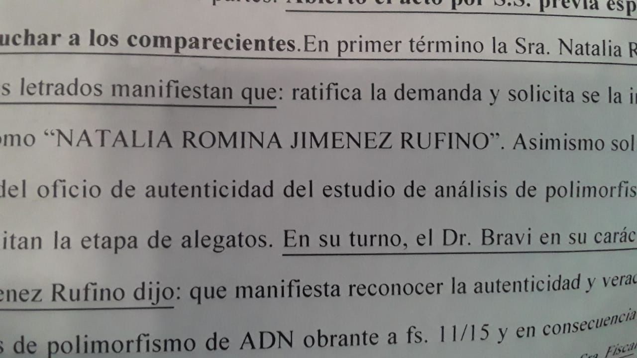 "En la audiencia se ha llegado al reconocimiento pero tiene que dictar una sentencia el juez. La victoria de Natalia es haber obtenido su identidad pero de todos modos va a pasar a resolución para que pueda determinarlo como corresponde el Juez a través de una sentencia", reconoció a este medio la abogada Carolina Farías, quien trabajó en el caso junto a su hermano Osvaldo y Alberto Domínguez.