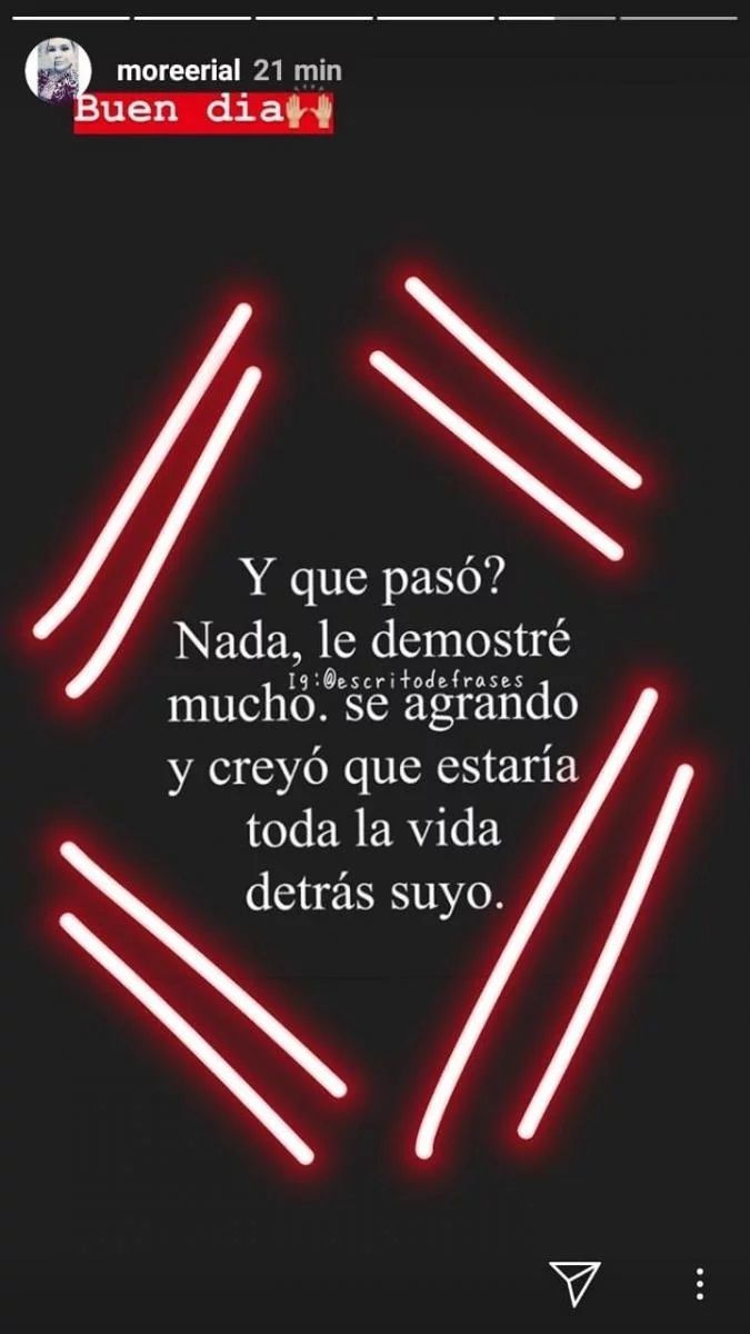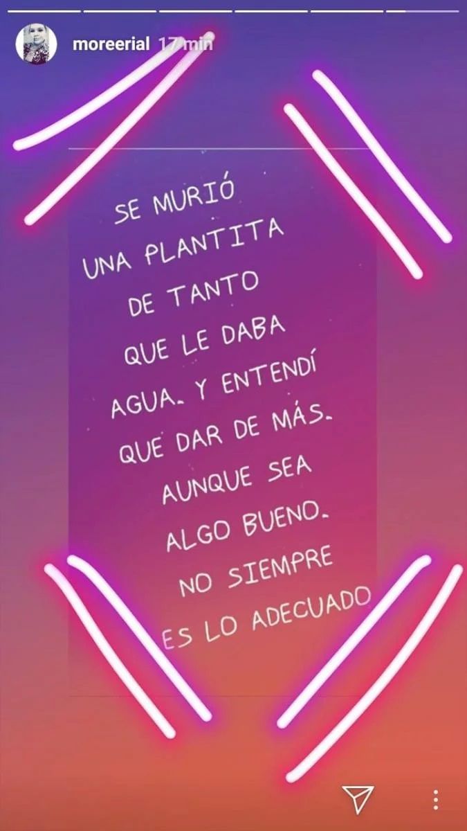 Además, subió algunas imágenes en sus historias de Instagram con frases que dejaban ver su dolor: “Se murió una plantita de tanto que le daba agua, y entendí que dar de más, aunque sea algo bueno, no siempre es lo adecuado".