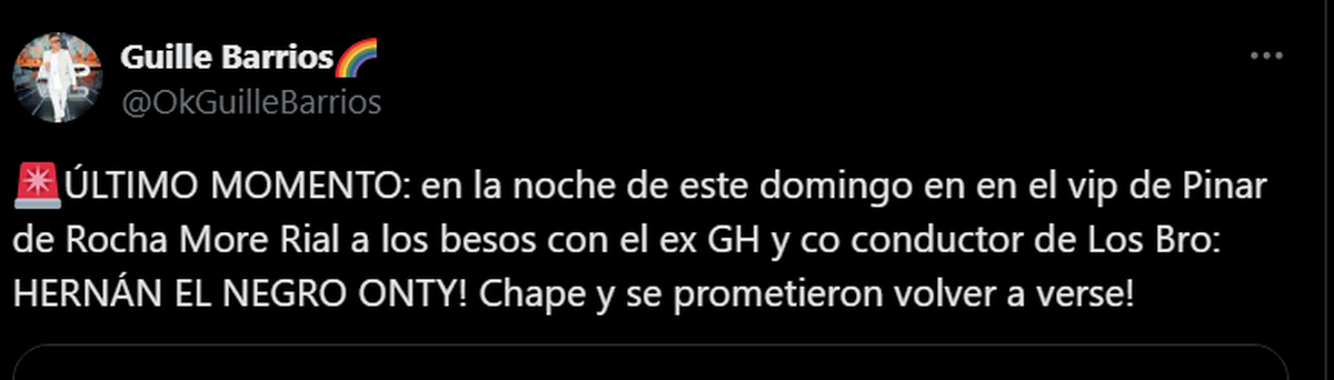 Sin embargo, dentro del posteo, Barrios detalló: "Chape y prometieron volver a verse". "Hubo chape confirmado", remarcó minutos después ante las dudas de los internautas.