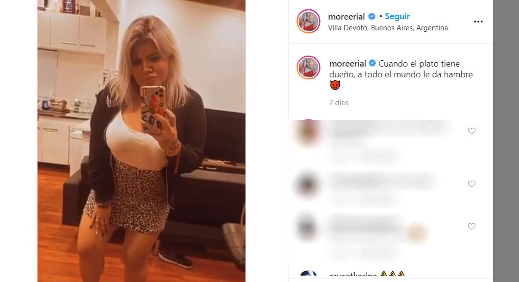 De pollerita animal print, una musculosa blanca ceñida al cuerpo y unas zapatillas a tono, la hija del conductor de “Intrusos”, América, se sacó una selfie en el espejo de su casa con un pícaro mensaje en clave ¿a su nuevo candidato?