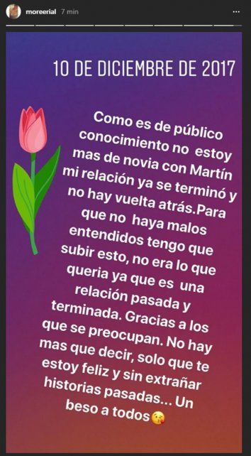 Instagram para aclarar que no hay chance alguna de volver a reencontrarse con su ex: