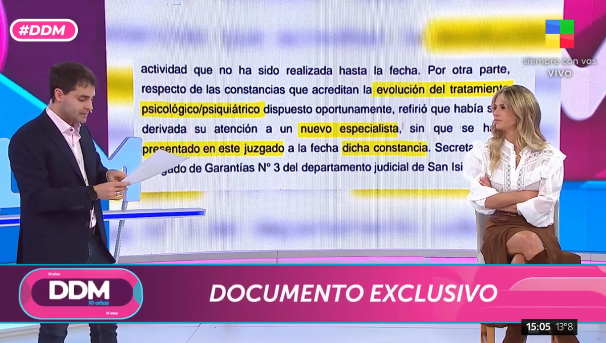 Martín Candalaft compartió detalles del caso en DDM (América TV), donde dejó entrever que la hija de Jorge Rial estaría desafiando abiertamente a la Justicia y según informó, no tolerarían más incumplimientos: “No soportamos más. Estamos hasta acá de que no cumpla con las condiciones que pusimos. Después ella no explica, pero preferimos que cumpla”.