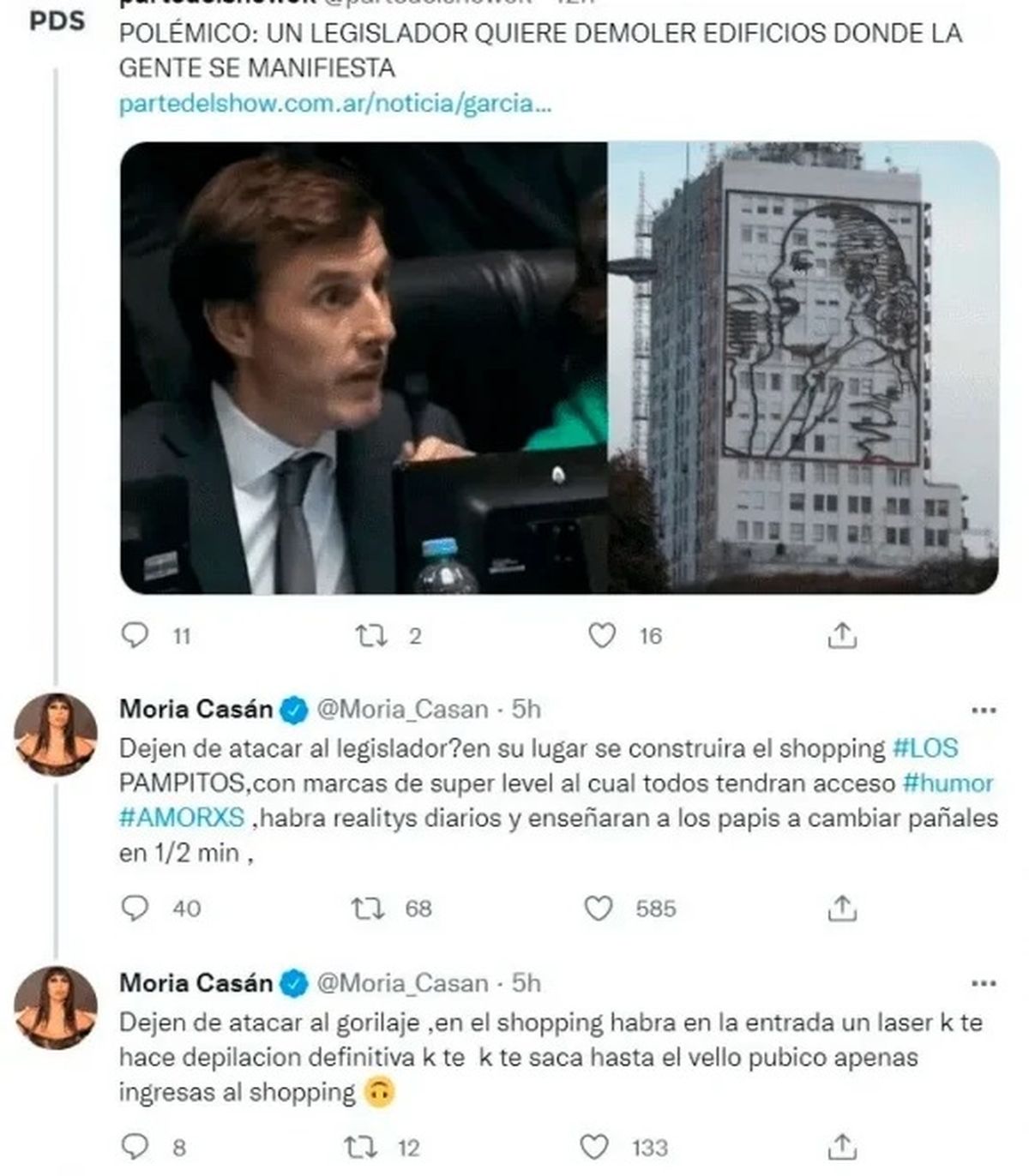 El proyecto de ley de Roberto García Moritán busca demoler el edificio de Desarrollo Social que está ubicado sobra la Avenida 9 de Julio. (Foto: @Robergmoritan)