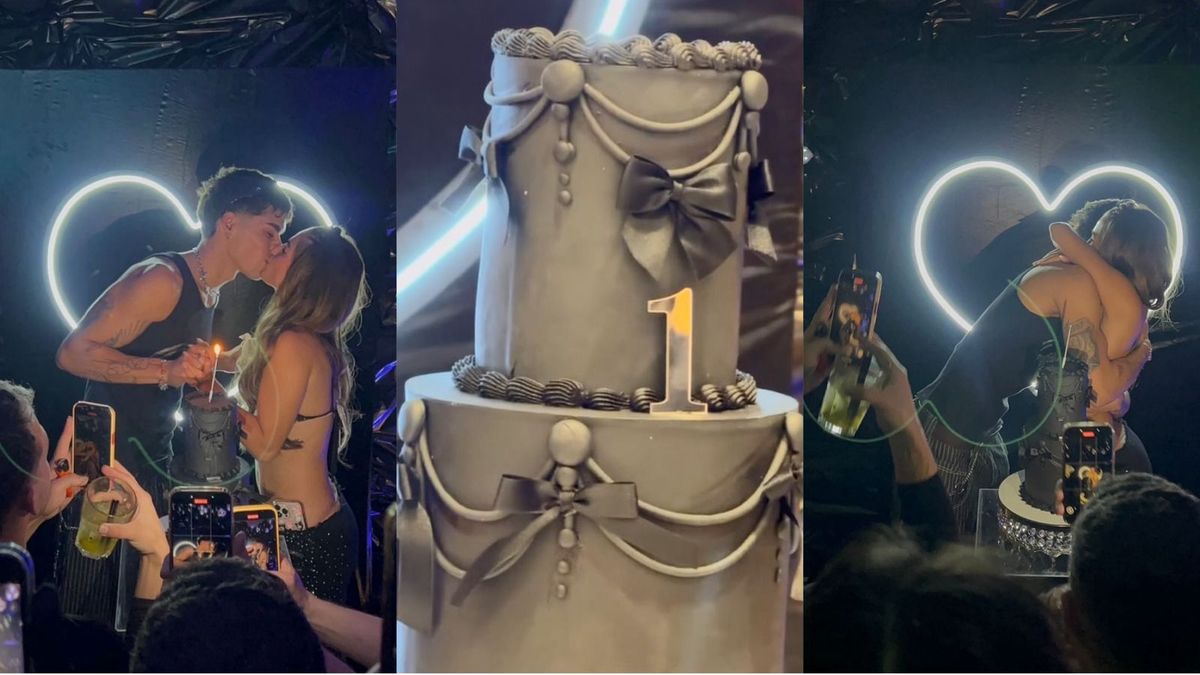 Convertida en una figura destacada del mundo influencer y con una carrera de modelo ya instalada, Poggio mostró detalles del encuentro, marcado por un clima romántico y glamoroso. La ambientación tuvo un rol clave: un corazón iluminado funcionó como marco del brindis, una torta de dos pisos decorada con moños y el número uno se convirtió en protagonista, y globos negros y plateados completaron la escena pensada para destacar la fecha.