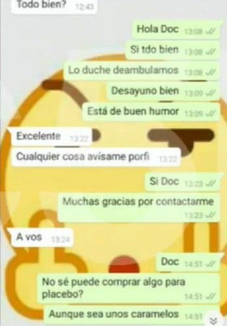 Algunas de las cosas que se cuentan son bastante llamativas. Por ejemplo, la enfermera le cuenta que "ya lo bañé" y que "ahora estamos deambulando", y después le dice que Diego"está de buen ánimo".