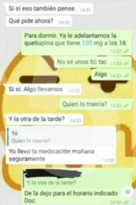 La enfermera le cuenta que lo bañó y que deambulaba con Diego, pero también lo notó nervioso y le pidió si le podía dar "pastillas Tic Tac" para tranquilizarlo.