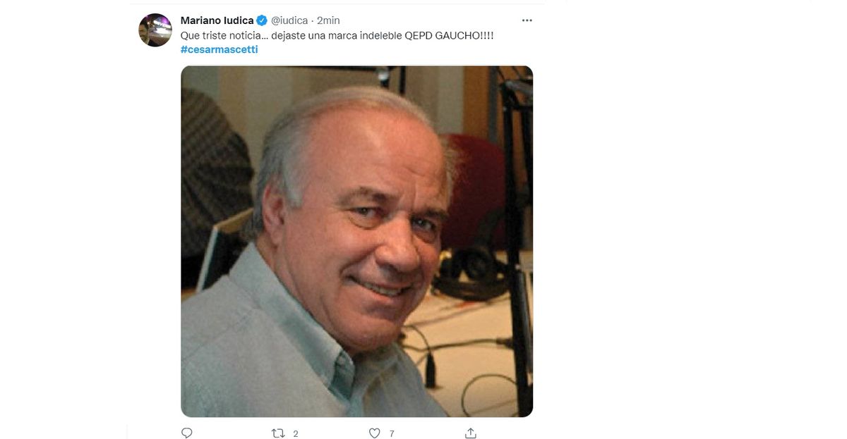 "Que triste noticia… dejaste una marca indeleble QEPD GAUCHO!!!! #cesarmascetti", indicó Iúdica.