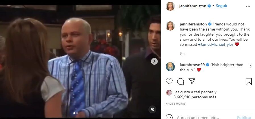 Por su parte, la actriz Jennifer Aniston, otra de las protagonistas de la famosa historia, lo despidió con un posteo en Instagram.