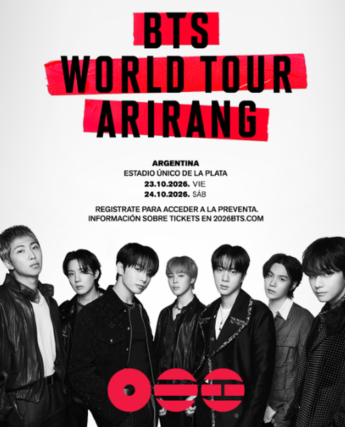 ¡El sueño del ARMY argentino finalmente se hace realidad! Hoy, los íconos globales del pop, BTS, confirmaron los estadios y las coordenadas de venta para la esperadísima etapa latinoamericana del BTS WORLD TOUR ‘ARIRANG’. La gira regional arrancará el viernes 2 de octubre con dos noches al hilo en Bogotá, Colombia (Estadio Nemesio Camacho El Campín), para luego seguir por el Estadio San Marcos en Lima, Perú; el Estadio Nacional en Santiago, Chile; y tendrá su gran cierre latinoamericano con tres noches en el Estádio do MorumBIS en São Paulo, Brasil. Coronarán este inmenso recorrido al marcar un hito absoluto: sus primeros shows en la historia de Buenos Aires, Argentina, presentándose en el Estadio Único de La Plata, producidos por DF Entertainment.