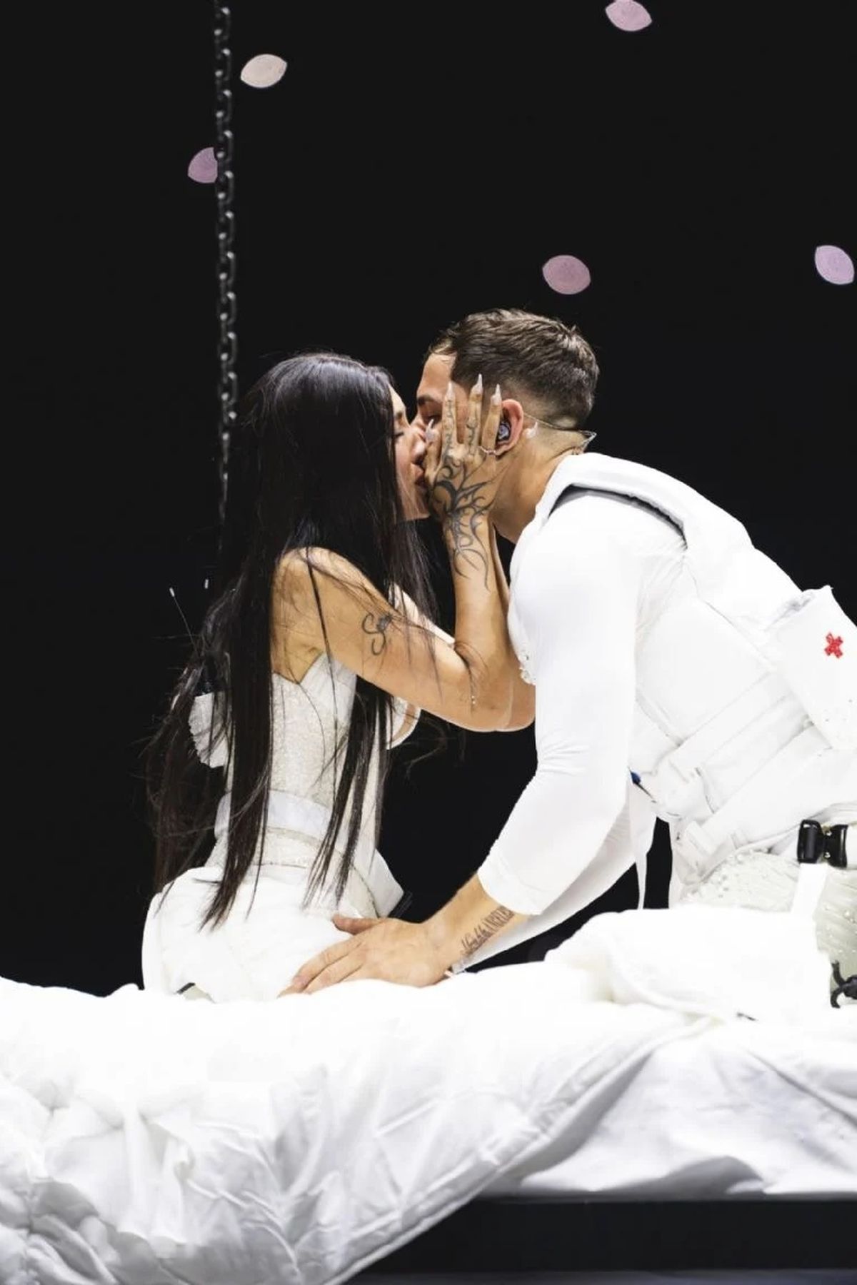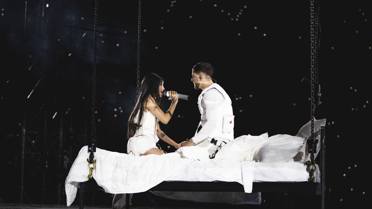 Lo cierto es mientras interpretaban el tema, los dos vestidos de blanco y sentados sobre una cama en medio del escenario, J Rei descubrió uno de sus brazos para mostrarle a la cantante su nuevo tatuaje. ¿Qué es lo que decía? Si bien algunos aseguran que se grabó en la piel el nombre de ella, otros especulan con que podría ser una suerte de referencia especial por la pérdida de su embarazo.
