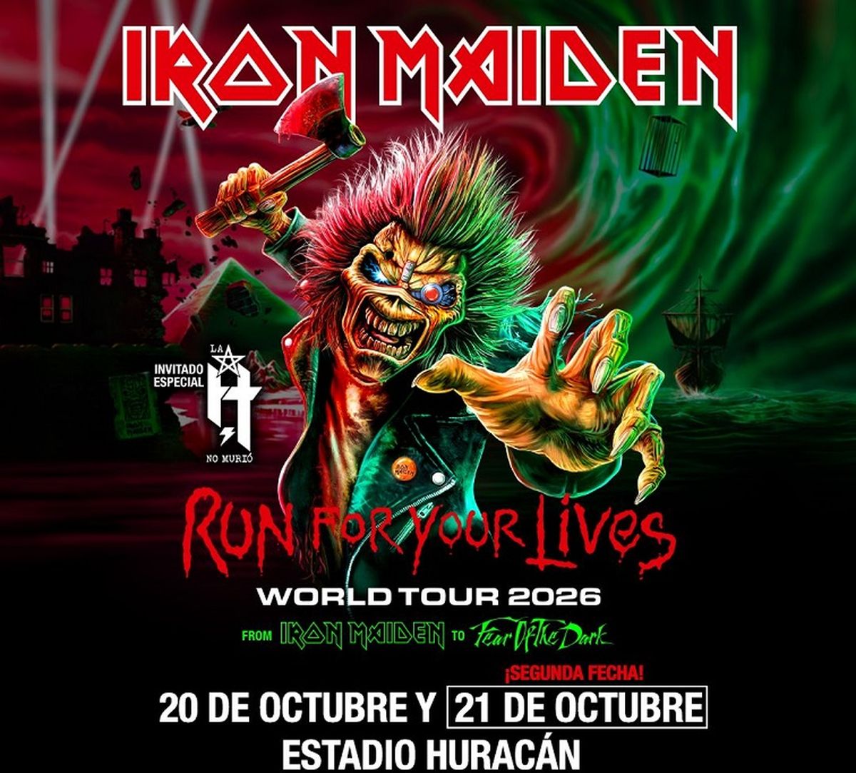 Iron Maiden vuelve a la Argentina en 2026 con dos funciones en Buenos Aires para la celebración de sus 50 años de carrera y que contará como banda invitada a La H no Murió.