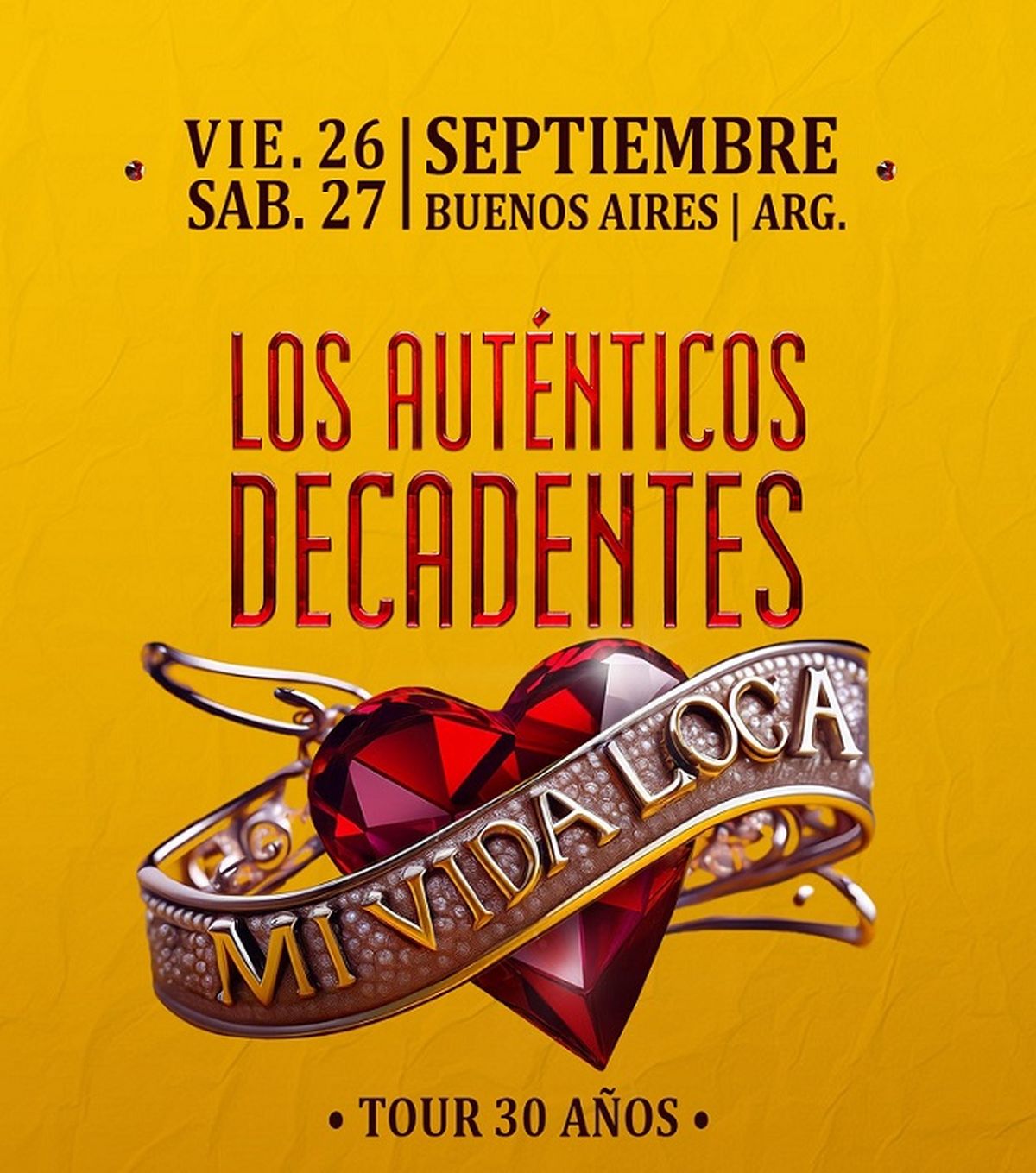 Los Auténticos Decadentes regresan a la Arena de Villa Crespo para celebrar en grande los 30 años de una verdadera joya del rock y la música popular: Mi vida loca.