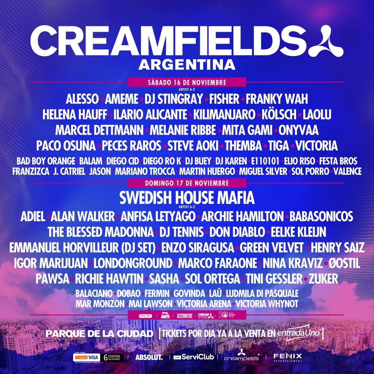 Esta edición presenta un formato renovado, con jornadas diurnas de 13:00 a 01:00 hs, y un line-up que reúne a los nombres más influyentes de la música electrónica, acompañados por talentos nacionales que completarán una experiencia única. Además, el Parque de la Ciudad ofrece una serie de beneficios que harán de este festival una vivencia segura, cómoda y accesible para todos los asistentes.
