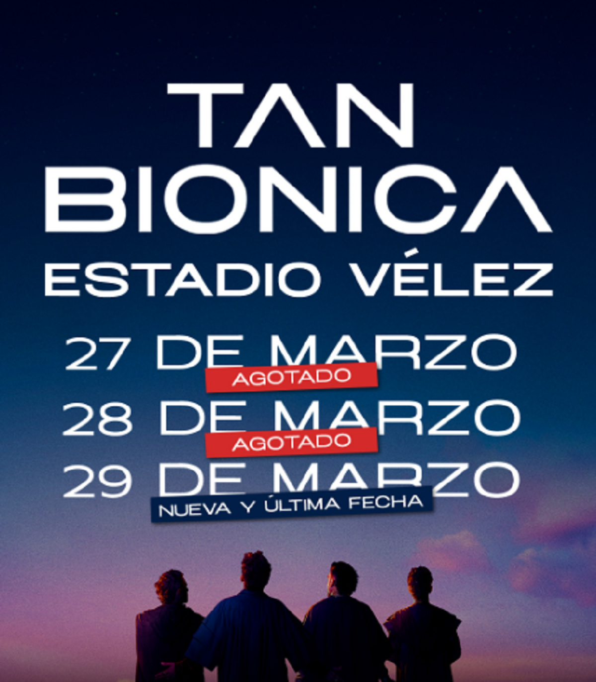 Mientras arrasa con su nuevo, y tan esperado álbum, Tan Bionica volvió a causar furor anunciando su regreso a los escenarios. El público agotó las entradas de sus dos shows en el Estadio Vélez previstos para los días 27 y 28 de marzo.