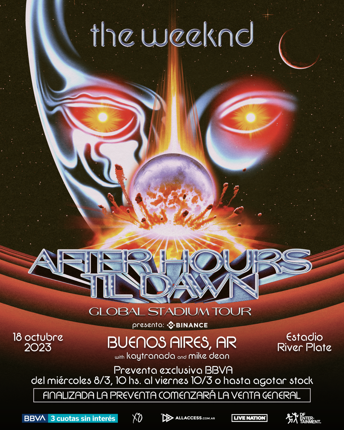 Al fin terminó la espera para los fans de The Weeknd. Tras su debut en Argentina en Lollapalooza en 2017, pasaron muchas cosas en la vida de Abel Makkonen Tesfaye, nombre real detrás del multifacético artista canadiense. Con tres discos de estudio llenos de éxitos desde aquel entonces, a los que hace poco se sumó el soundtrack de Avatar, la fama del artista se multiplicó a la velocidad de la luz, convirtiéndolo en uno de los nombres más relevantes de la escena del pop contemporáneo. No es de extrañar que haya cosechado miles de fans más en Argentina, muchos de los cuales lo estarán viendo por primera vez en el Estadio River Plate el próximo 18 de octubre. Las entradas podrán adquirirse en una instancia de preventa exclusiva para clientes BBVA a partir del miércoles 8 de marzo a las 10 am (por 48 hs o hasta agotar stock), que luego dará paso a la venta general a partir del viernes 10 de marzo a las 10 am. El único medio oficial de venta en ambos casos es AllAccess.com.ar.