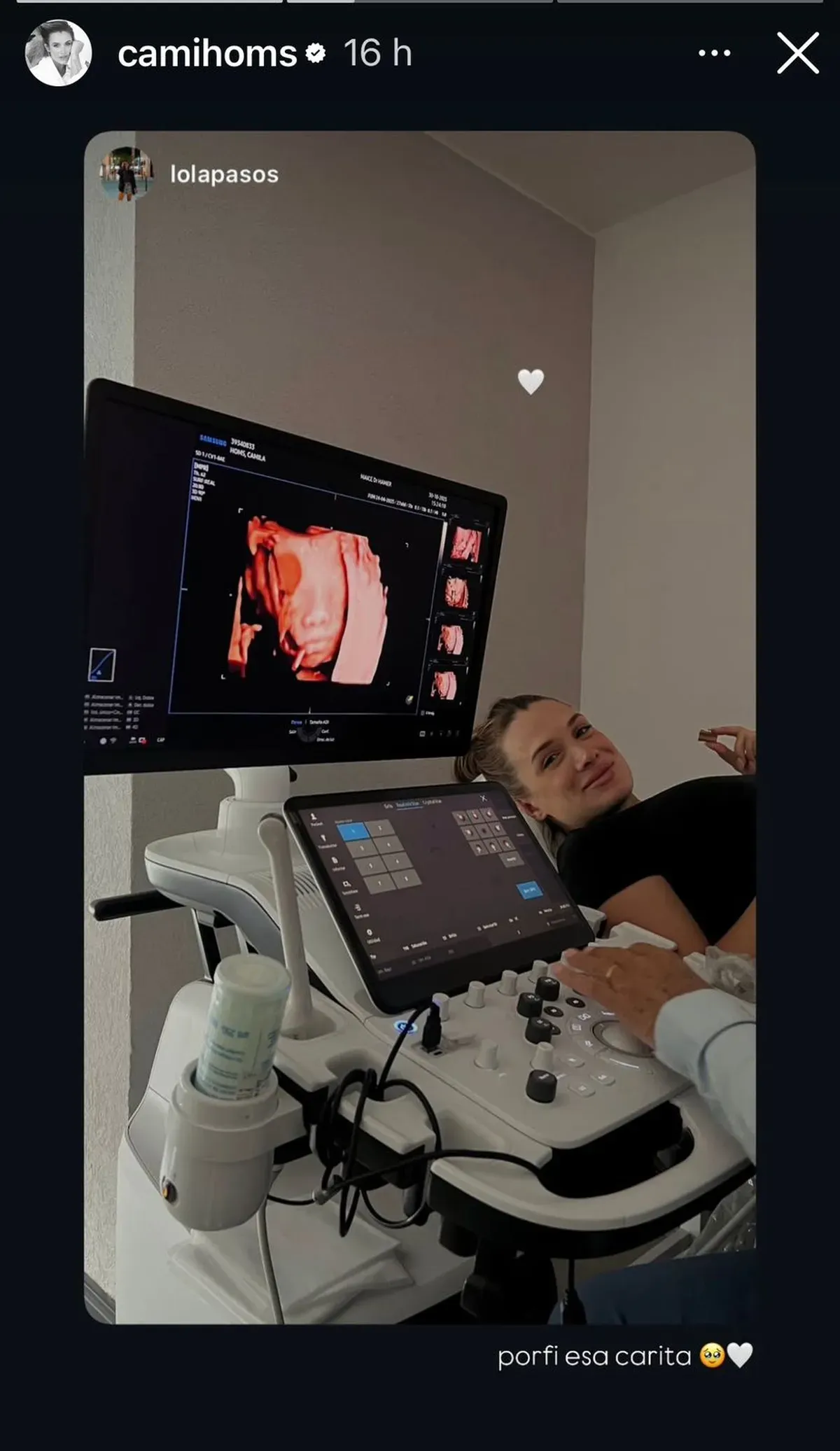 La imagen reflejaba que todo avanzaba de manera excelente y, gracias a la definición que permite la tecnología actual, la expareja de Rodrigo de Paul junto a su novio pudieron observar con nitidez los rasgos de la carita de su hija. “Porfi, esa carita”, escribió Homs en la foto que compartió en sus historias, donde se la ve recostada en la camilla mientras la especialista realiza el procedimiento.