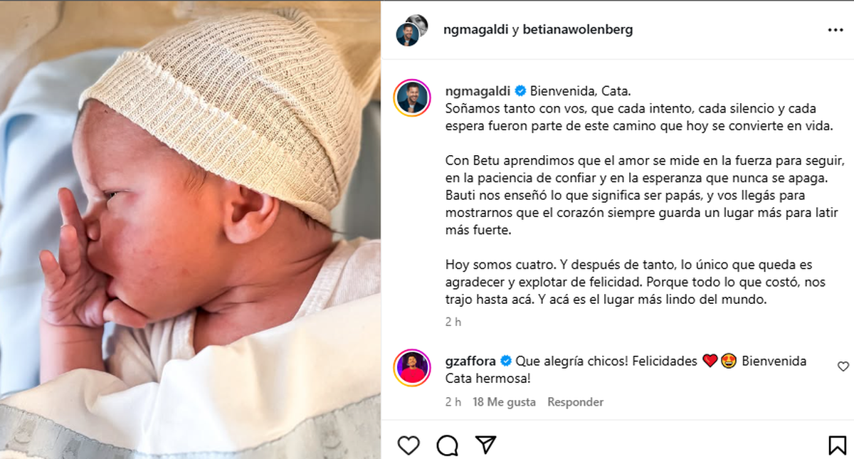 En 2017, Nicolás Magaldi y Betiana Wolenberg vivieron uno de los momentos más importantes de sus vidas con el nacimiento de su primer hijo, Bautista, y el conductor lo dejó bien claro en sus redes sociales.