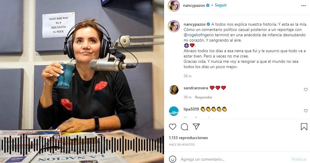 Luego, desde Instagram, Pazos compartió ese emotivo momento al aire´con una reflexión: "Todos nos explica nuestra historia. Y esta es la mía. Cómo un comentario político casual posterior a un reportaje con @rogeliofrigerio terminó en una anécdota de infancia desnudando mi corazón. Y sangrando al aire".