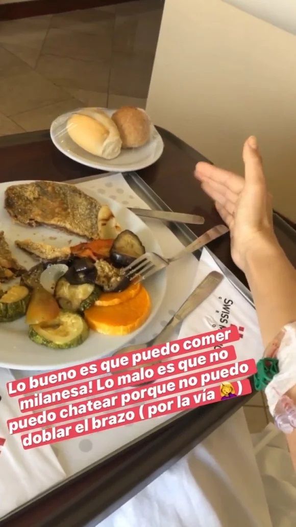 Y agregó: "Lo bueno es que puedo comer milanesas. Lo malo es que no puedo chatear porque no puedo doblar el brazo por la vía (del suero)".