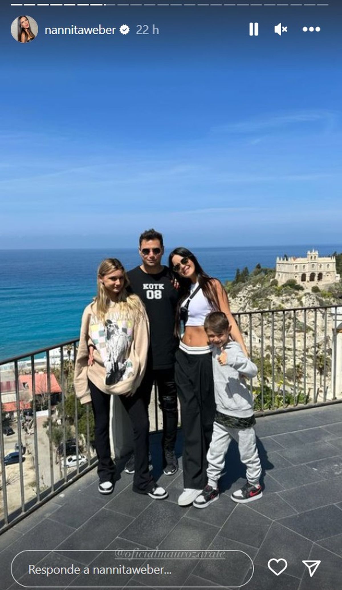 Natalie suele viajar con sus hijos a Europa ya que Mauro está jugando en el Cosenza Calcio de la serie B de Italia y por el momento se encuentra recuperando de una grave lesión que sufrió en febrero: rotura del ligamento cruzado anterior de la rodilla izquierda.