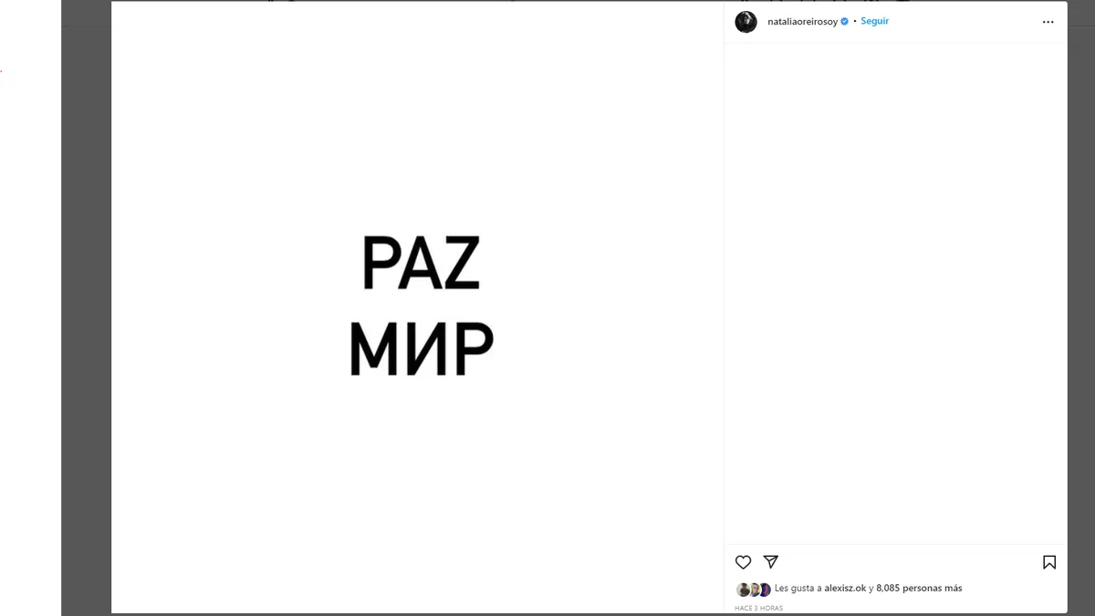 "Queremos paz", fue una de las frases que Oreiro compartió en sus redes ante el conflicto bélico entre ambos países.