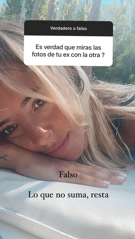 "¿Es verdad que mirás fotos de tu ex con la otra?", le consultaron a través de Instagram Stories. A lo que respondió sin vueltas: "Falso, lo que no suma, resta".