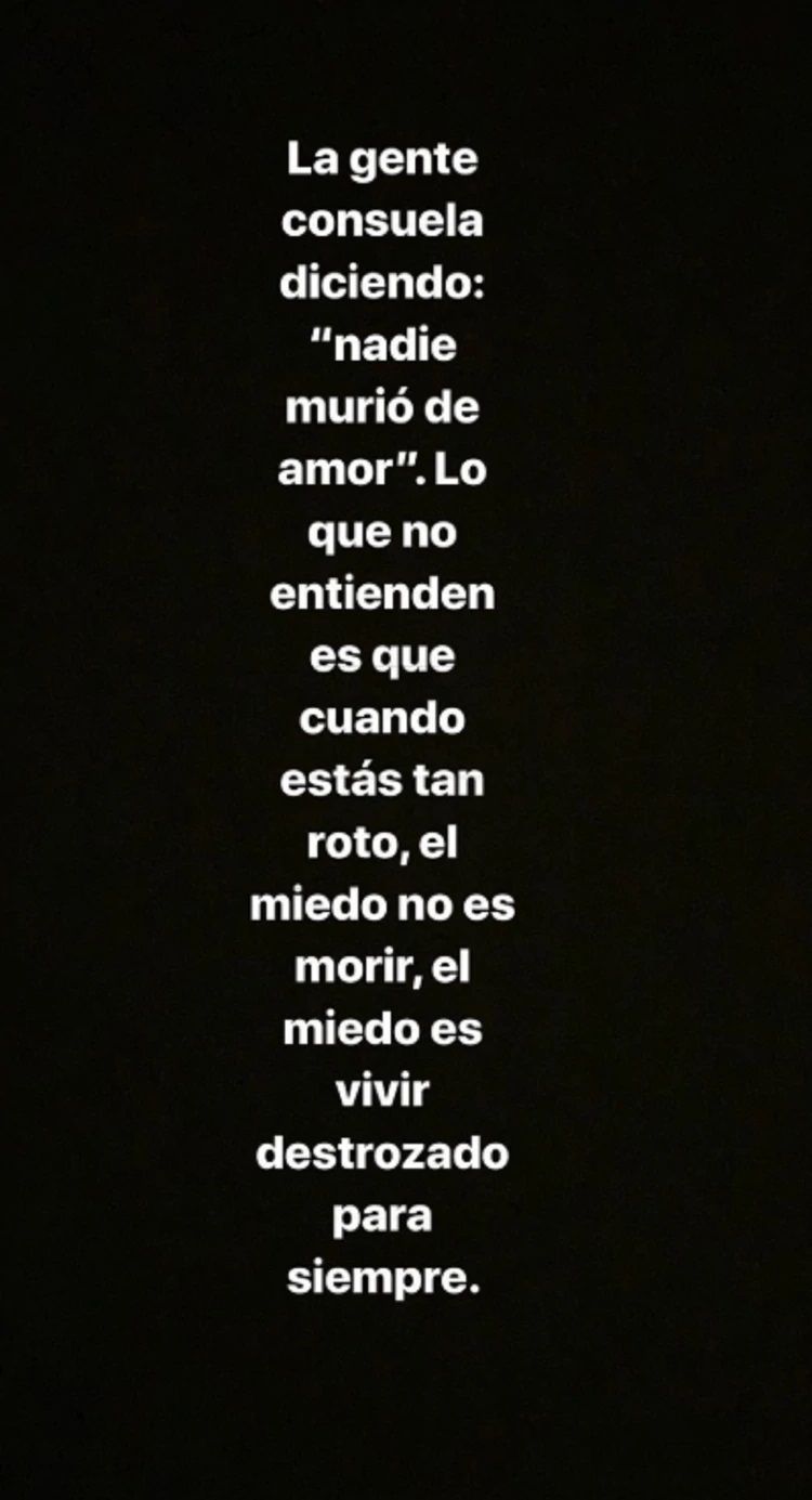 “La gente consuela diciendo: ‘nadie murió de amor’. Lo que no entienden es que cuando estás tan roto, el miedo no es morir, el miedo es vivir destrozado para siempre”, describió Natien uno de sus mensajes.