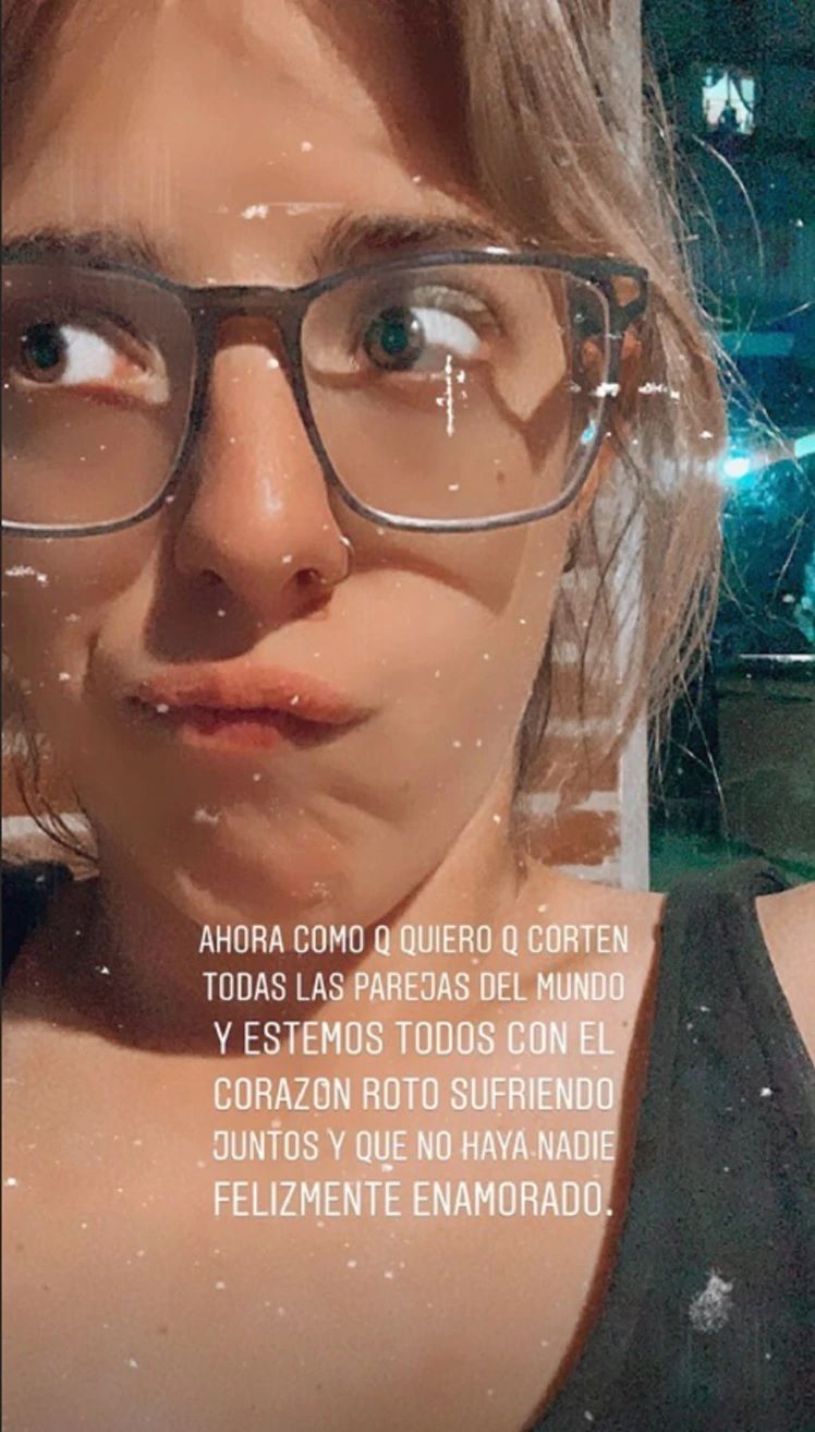 “Ahora como que quiero que corten todas las parejas del mundo y estemos todos con el corazón roto sufriendo juntos y que no haya nadie felizmente enamorado”, agregó en otra profunda reflexión.
