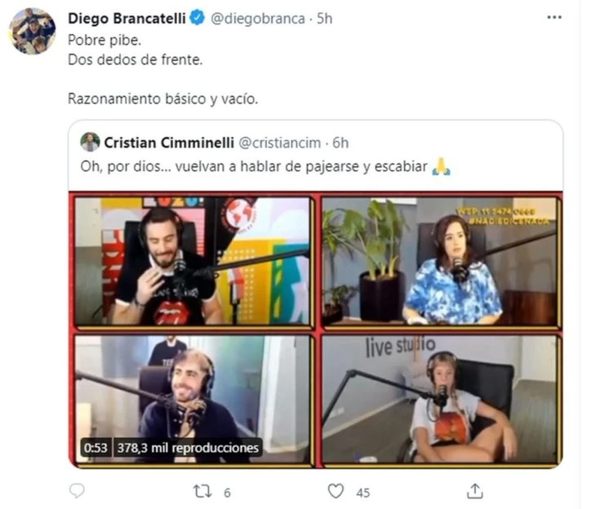 Esta semana Nico Occhiato le respondió duro a Mario Pergolini en su visita a LAM (América TV), donde -con los números a la vista- demostró el real liderazgo de Luzu TV, su canal de Youtube, frente a los despectivos comentarios del ex CQC. En tanto, ahora quedó envuelto en una nueva polémica tras un comentario político desde su programa Nadie dice nada por el que el periodista Diego Brancatelli salió a cruzarlo durísimo desde Twitter.