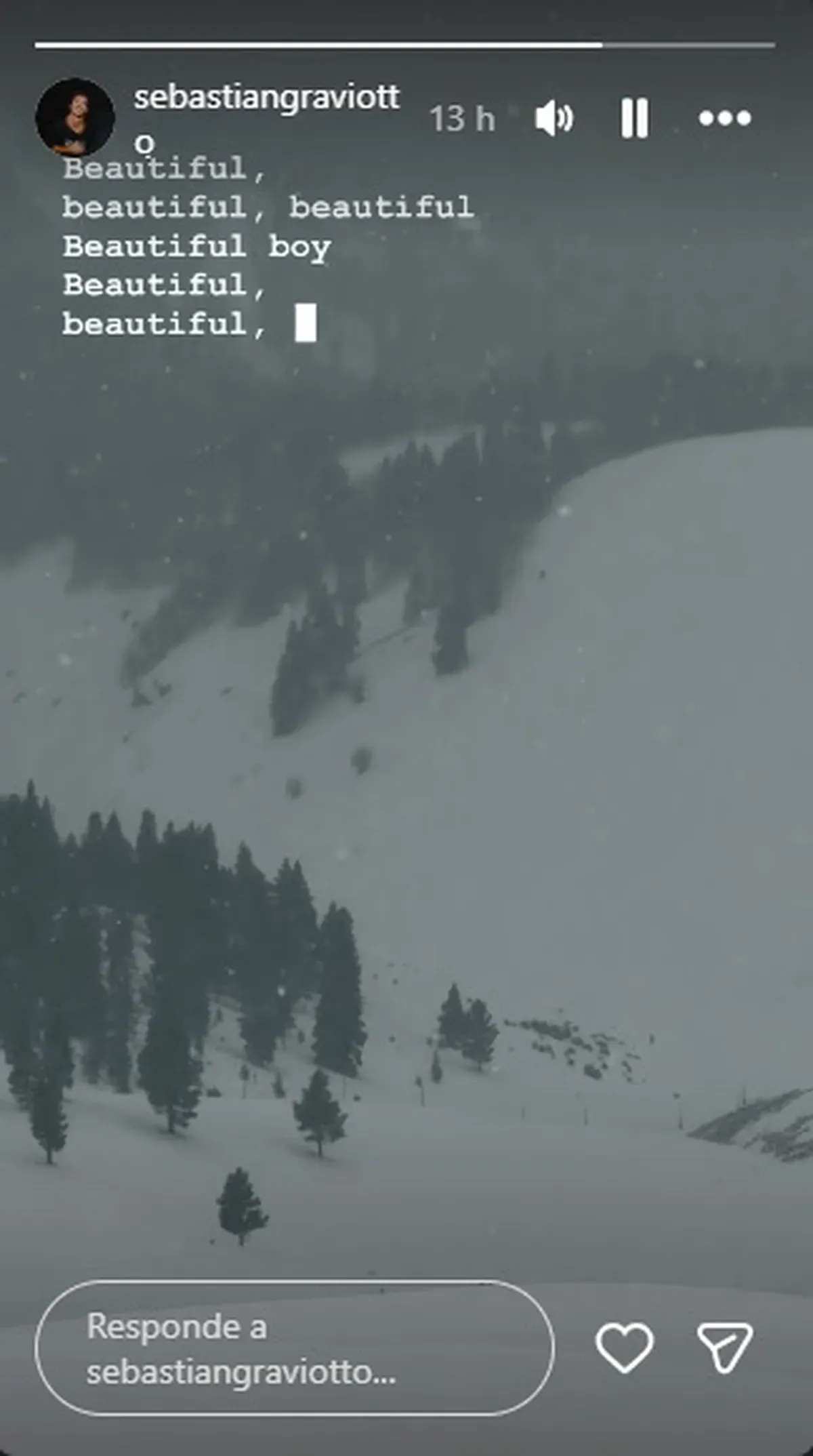 El mismo día en que nació su hijo, compartió en sus redes sociales la canción Beautiful Boy, el clásico que John Lennon escribió para su hijo Sean. La publicación estuvo acompañada por imágenes de nieve cayendo suavemente, un detalle que muchos interpretaron como un gesto íntimo y emotivo.