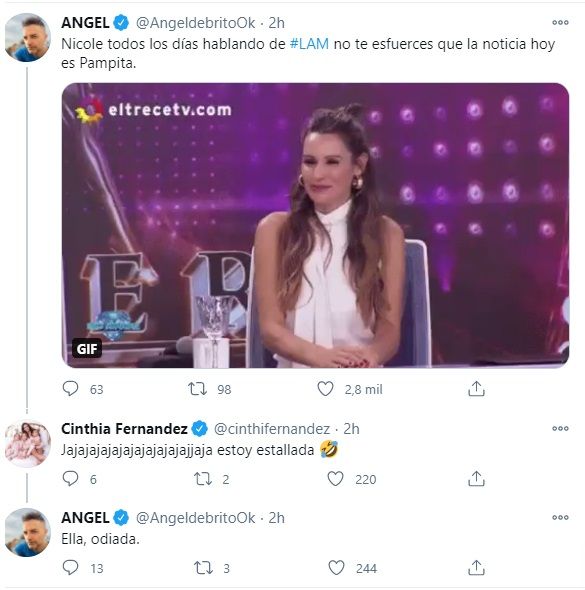Al enterarse de esto, Ángel de Brito le contestó fuerte a la modelo desde Twitter: "Nicole todos los días hablando de #LAM no te esfuerces que la noticia hoy es Pampita".