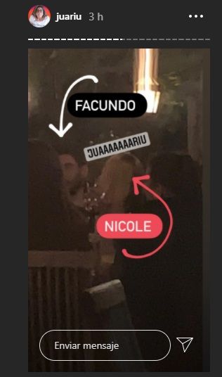 Pero este lunes, Nicole aclaró todo. “Él estaba sentado en otra mesa... Yo fui a comer con mis amigos más íntimos. De casualidad, estaba Facundo con otro amigo”, explicó en el ciclo de El Trece conducido por el Pollo Álvarez.
