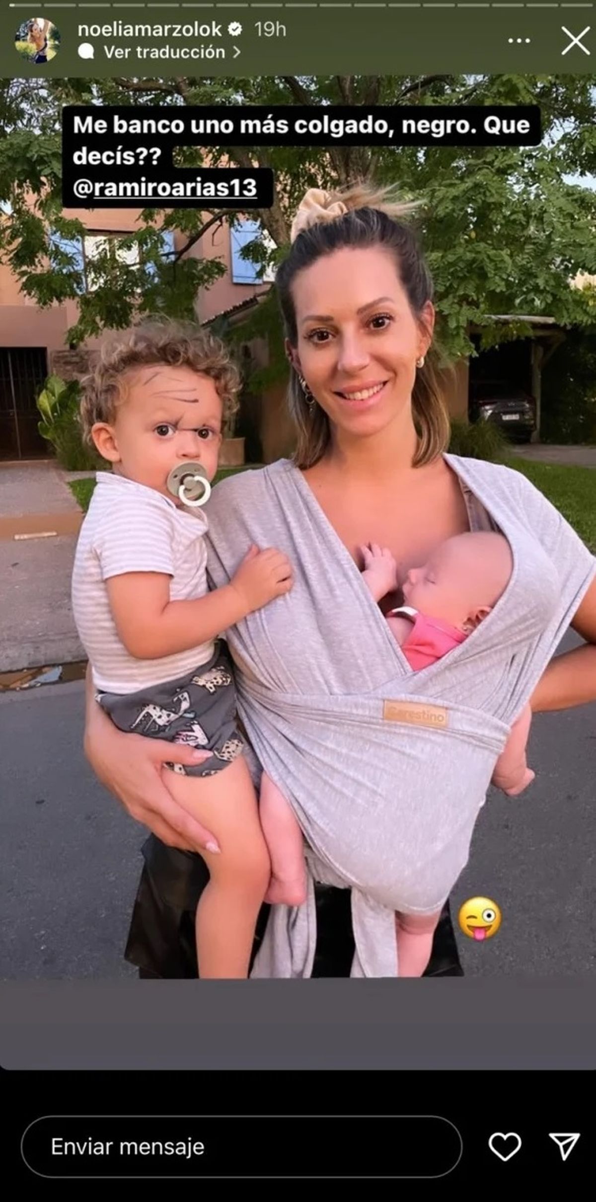 "Me banco uno más colgado, negro. ¿Qué decís?", le preguntó Noelia a Ramiro, arrobándolo en Instagram, con una foto junto a sus dos hijos.