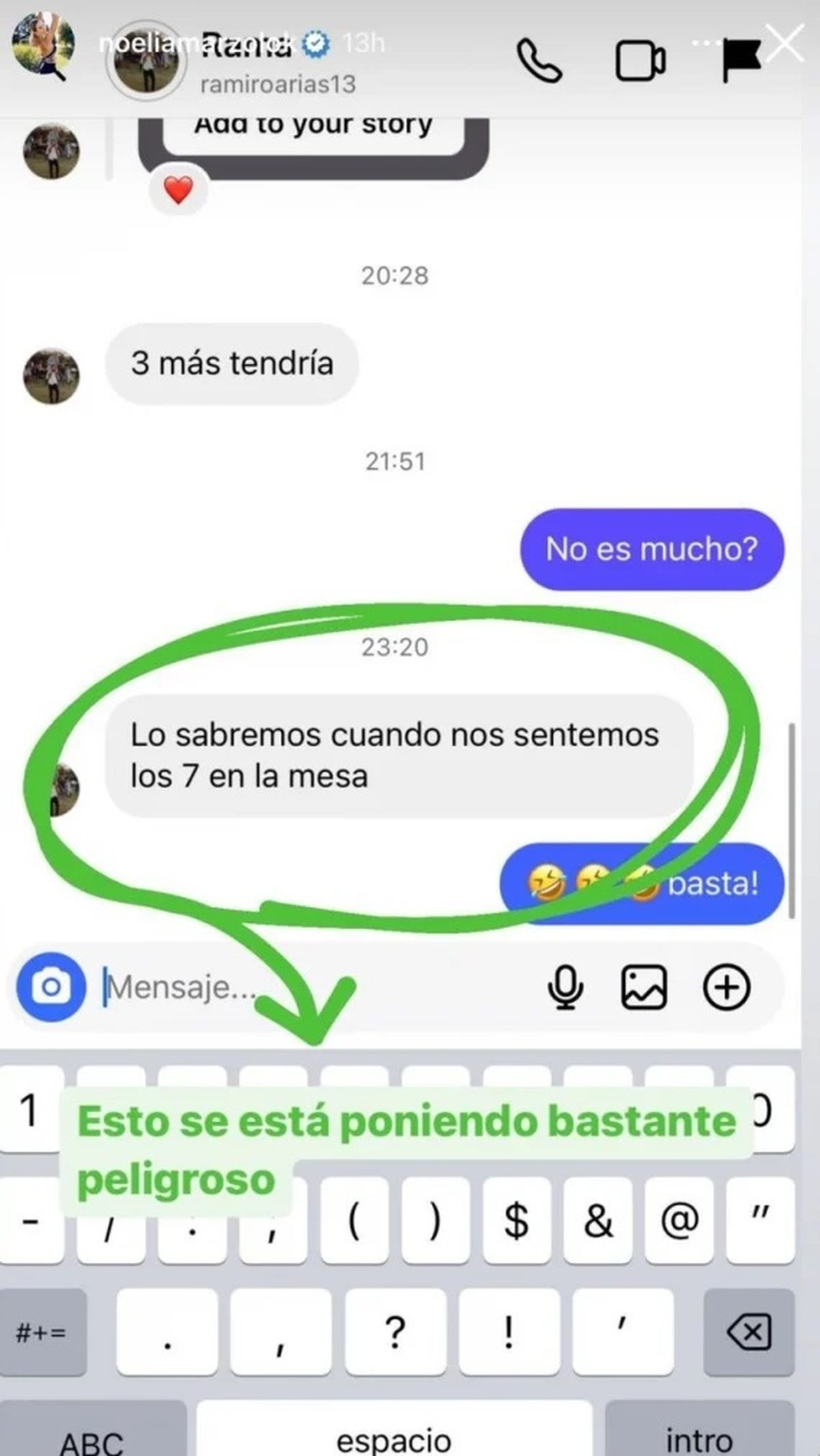 A lo que el futbolista respondió vía Instagram: "Tres más tendría". "No es mucho", le dijo ella. Y el futbolista comentó: "Lo sabremos cuando nos sentemos los 7 en la mesa"