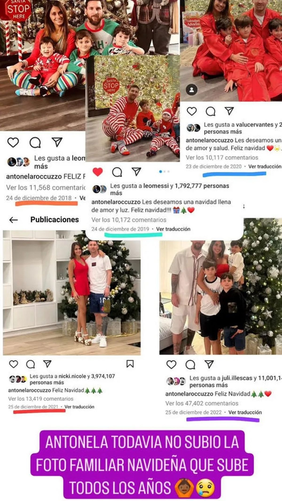 Así lo hicieron saber desde cuenta de Instagram Lomáspopucom, dejando entrever la posible crisis matrimonial deslizando: "Es súper raro que no suban foto navideña si lo venían haciendo hace años". Esta situación se suma a la llamativa ausencia del futbolista en el casamiento religioso de Carla, la hermana de Antonela.