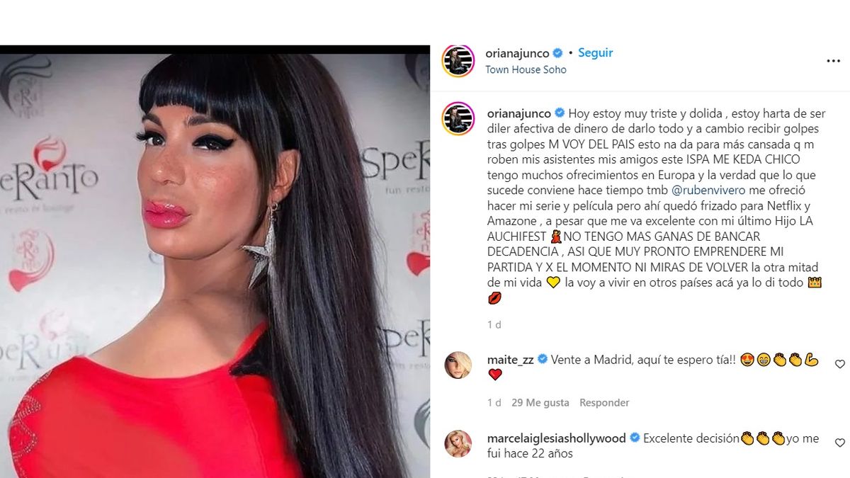 "Así que muy pronto emprenderé mi partida y, por el momento, ni miras de volver. La otra mitad de mi vida la voy a vivir en otros países, acá ya lo di todo”, finalizó la actriz.