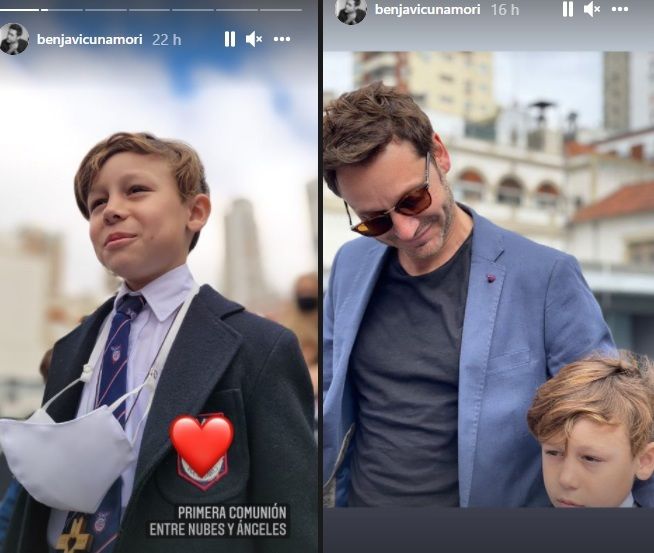 "Primera comunión entre nubes y ángeles", expresó el chileno desde su cuenta de la red social con una imagen de su hijo.