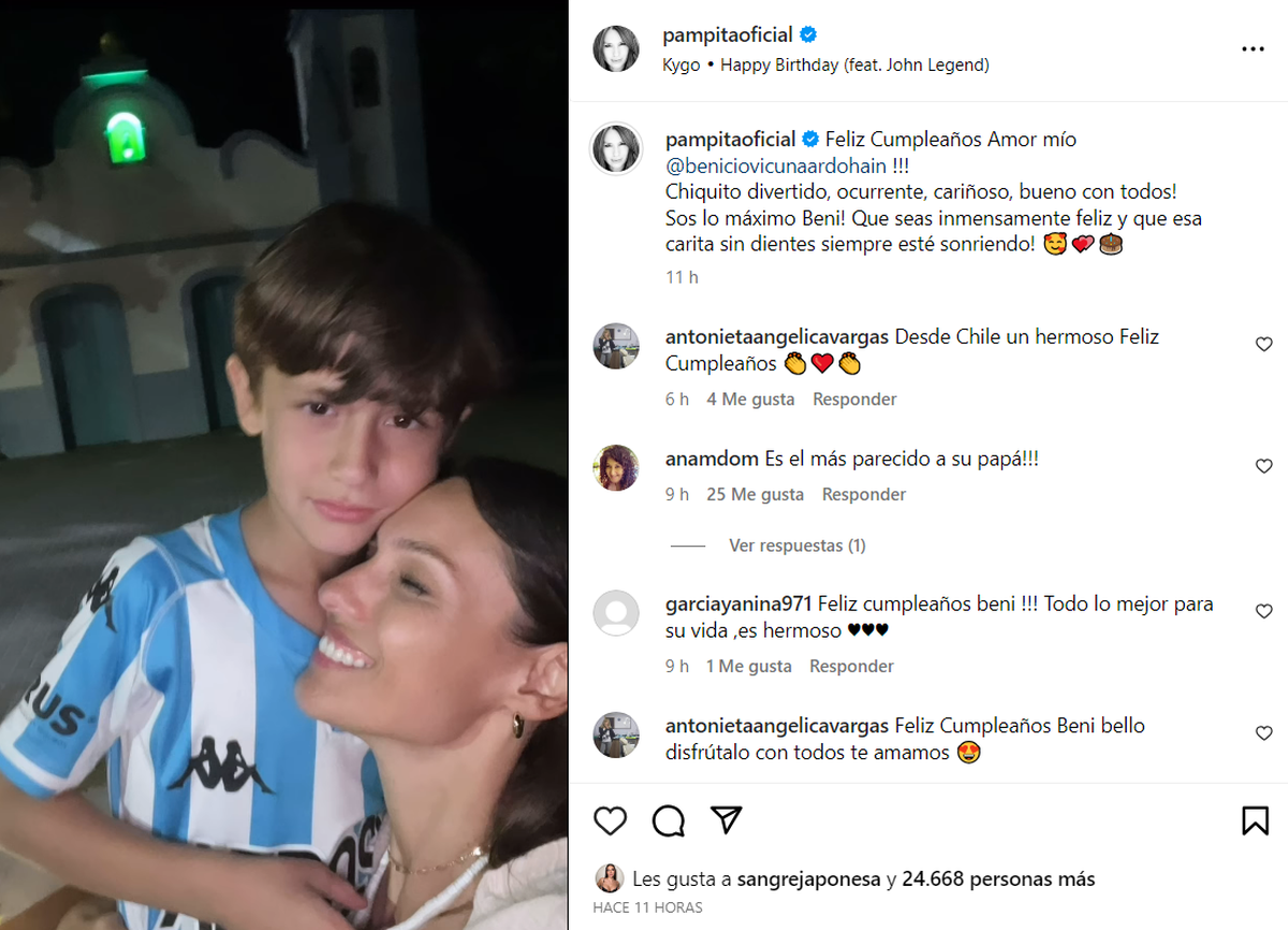 En la publicación, adjunto un video con imágenes del niño en distintos viajes y momentos familiares junto a ella y sus hermanos. También, compartió en sus historias un collage realizado por una seguidora donde se podía leer: "Feliz cumple Beni! Se siempre muy feliz".