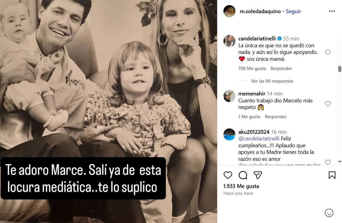 soledad aquino posteo apoyo a marcelo tinelli conflicto familiar