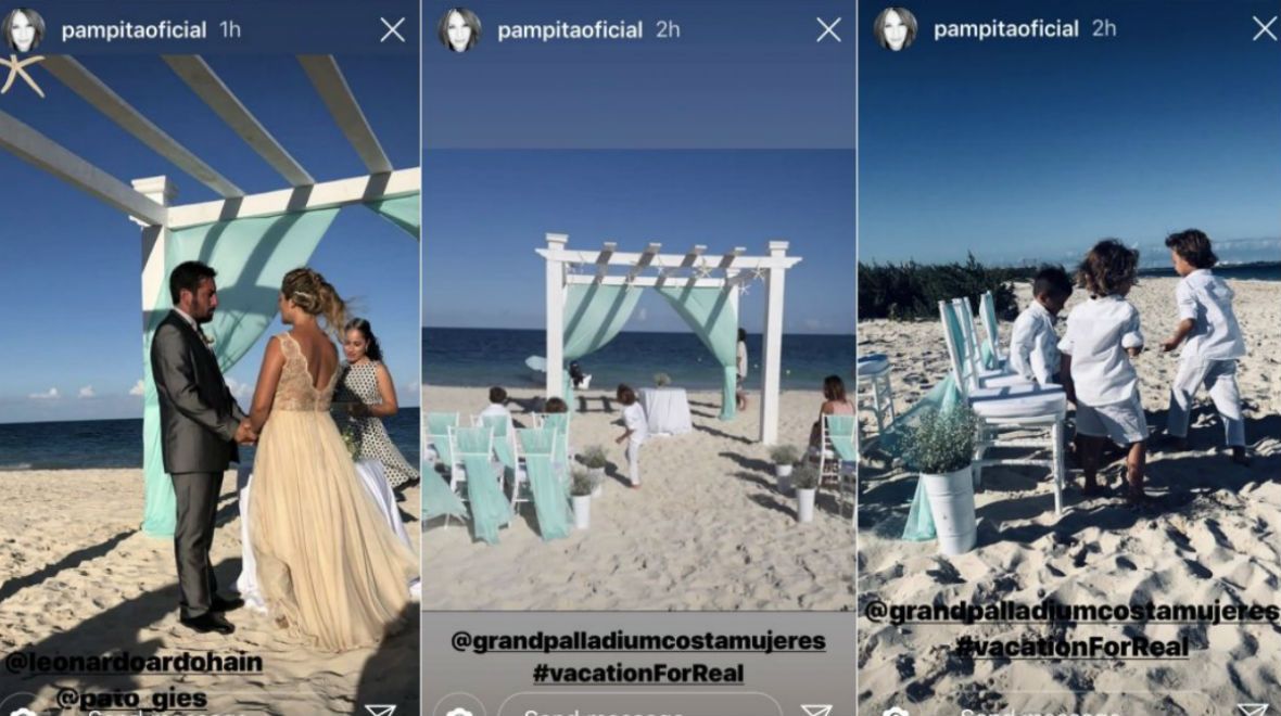 Pampita viajó a México y presenció la boda a orillas del mar de su hermano Leonardo