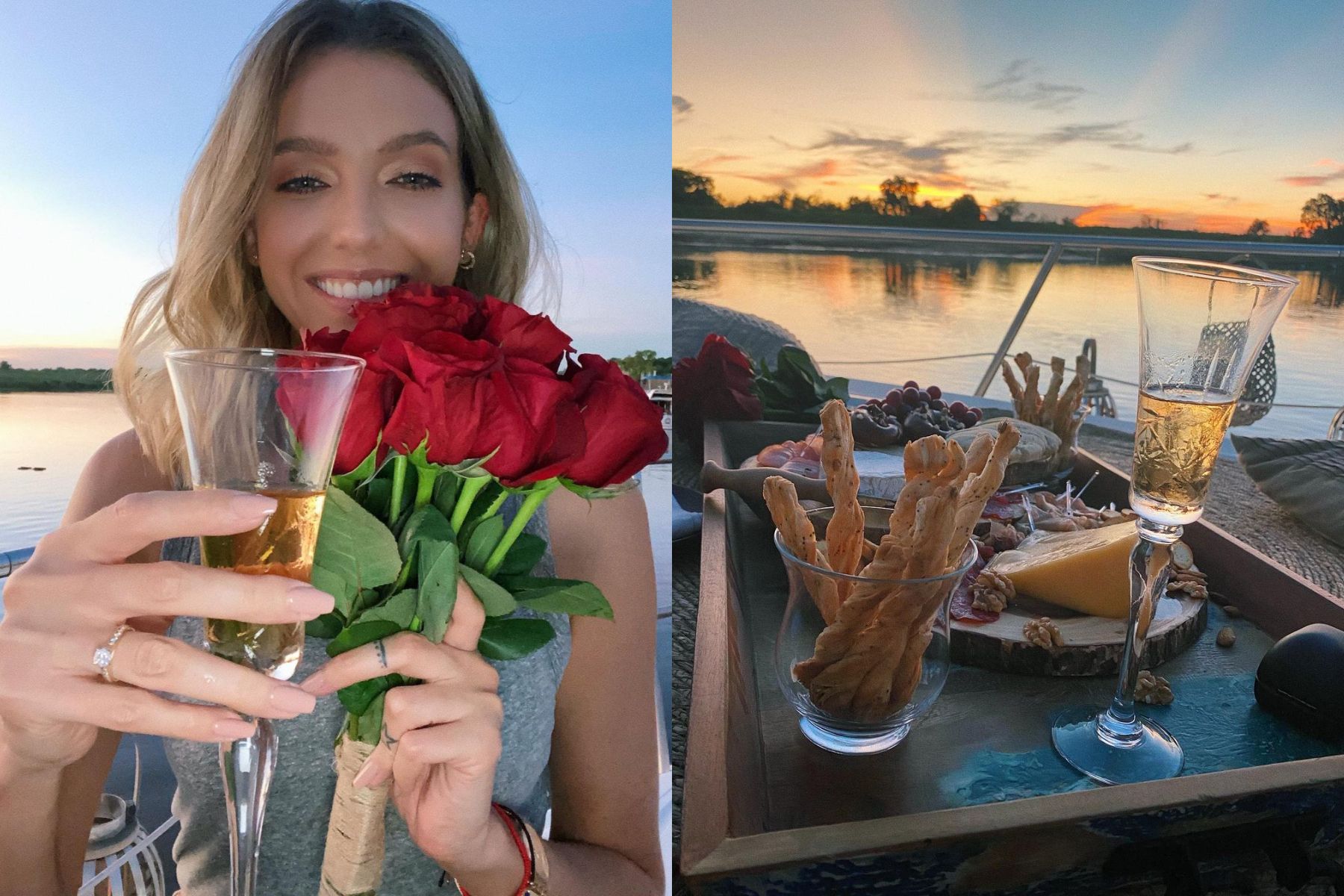 La misma publicó fotos del romántico pedido que incluyó yate, atardecer, champagne y rosas.
