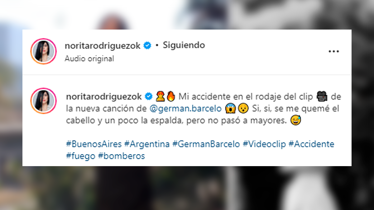 Norita Rodríguez estaba realizando una de las grabaciones para el tema nuevo del cantante argentino Germán Barceló. Usó específicamente una bengala de color amarillo cuando de repente se le cae a la bailarina parte del fuego que despedía la pirotecnia. Se quemó el cabello y se tuvo que cortar una parte.